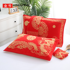 金号纯棉家用成人男女结婚枕巾一对装全棉大红枕头巾