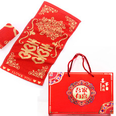 毛巾喜字红色结婚喜回礼喜事专用礼盒喜庆红手巾订婚伴手礼