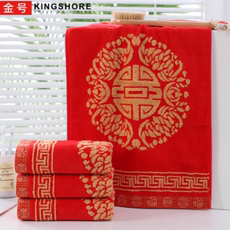 金号纯棉家用结婚大红毛巾全棉割绒
